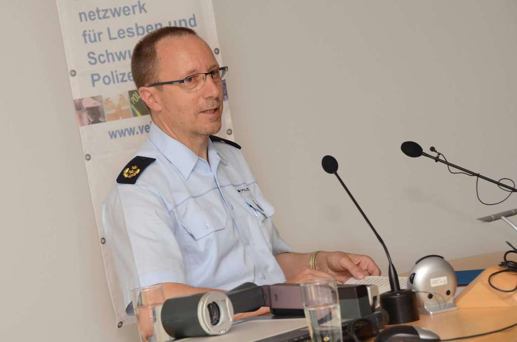 Vortrag: Akzeptanz gleichgeschlechtlicher Lebensweisen innerhalb der Polizei - Erfahrungen und Entwicklungen (Fortbildungsveranstaltung für Führungskräfte, Polizeiseelsorger, SozialberaterInnen, Soziale AnsprechpartnerInnen, Personalratsmitglieder, Studierende, DozentInnen