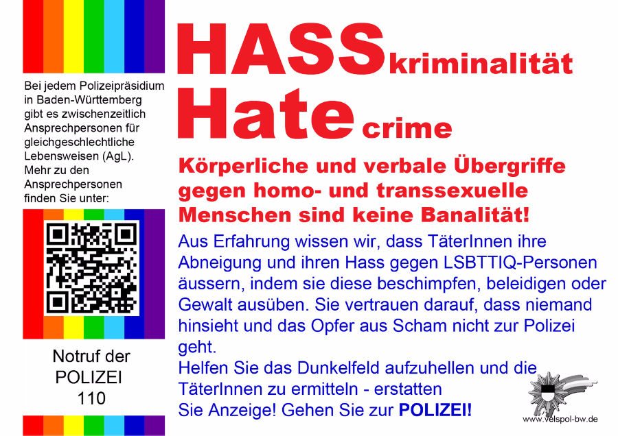 Teilweise gehört auch die Kontaktherstellung und Kontaktpflege zur LSBTTIQ-Community zum Aufgabenbereich. Darunter fällt auch das Deliktsfeld `Hasskriminalität`.